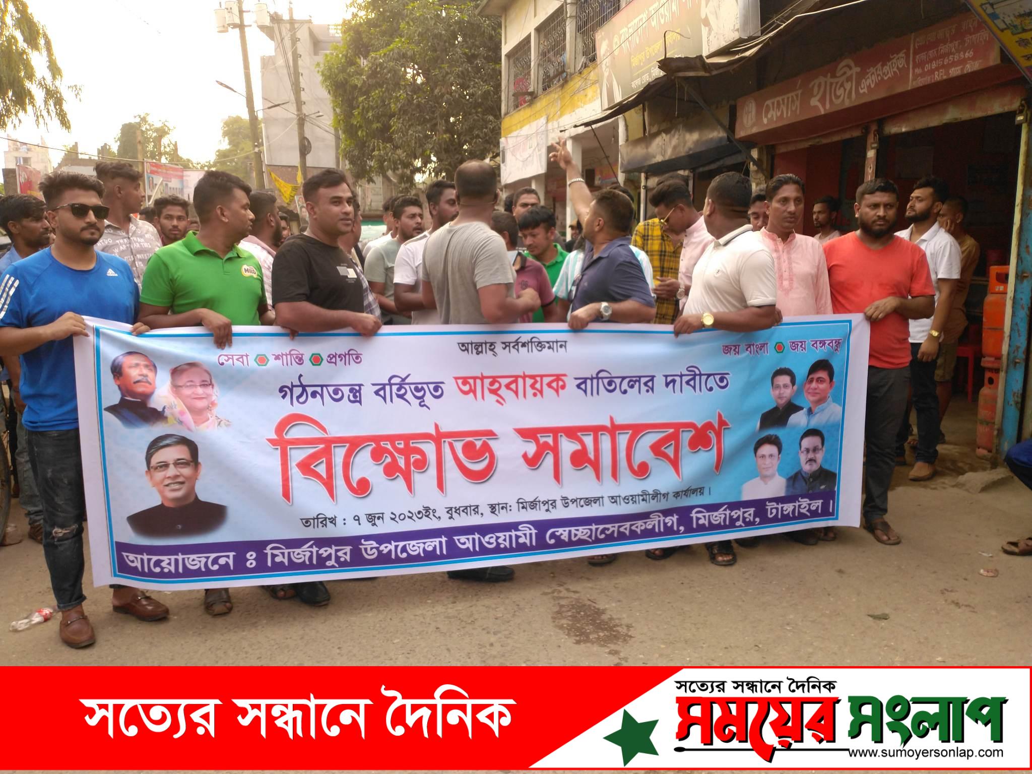 গঠনতন্ত্র বর্হিভূত অপু শেখকে টাঙ্গাইলের মির্জাপুর উপজেলা স্বেচ্ছাসেবকলীগের আহবায়ক অনুমোদন দেয়ার প্রতিবাদে মির্জাপুরে বিক্ষোভ ও মিছিল সমাবেশ হয়েছে। বিকেলে উপজেলা সদরে মির্জাপুর উপজেলা স্বেচ্ছাসেবকলীগ সম্মেলন প্রস্তুতি কমিটি এই বিক্ষোভ ও সমাবেশ করেছে। দলীয় কার্যালয় হতে বিক্ষোভ বের হয়ে সদরের বিভিন্ন সড়ক প্রদক্ষিণ করে দলীয় কার্যালয়ের সামনে সমাবেশ করে। সমাবেশে উপজেলা স্বেচ্ছাসেবকলীগ সম্মেলন প্রস্তুতি কমিটির সিনিয়র যুগ্ম আহবায়ক শরিফুল ইসলামের পরিচালনায় যুগ্ম আহবায়ক খন্দকার রাসেল, তাজুল ইসলাম একাব্বর ও মোবারক হোসেন বক্তৃতা করেন। এসময় উপস্থিত ছিলেন উপজেলা আওয়ামী লীগের সভাপতি মীর শরীফ মাহমুদ, সাধারণ সম্পাদক ব্যারিস্টার তাহরিম হোসেন সীমান্ত, সহসভাপতি সৈয়দ ওয়াহিদ ইকবাল, যুগ্ম সাধারণ সম্পাদক আবু রায়হান সিদ্দিকী, দপ্তর সম্পাদক জহিরুল হক, সাবেক জিএস সেলিম সিকদার, জেলা যুবলীগের সহসম্পাদক মীর মঈন হোসেন রাজীব, উপজেলা যুবলীগের যুগ্ম আহবায়ক আবিদ হোসেন শান্ত, যুবলীগ নেতা সোহেল ভূইয়া, উপজেলা ছাত্রলীগের সাধারণ সম্পাদক সাইফুল ইসলাম সিয়া প্রমুখ উপস্থিত ছিলেন।