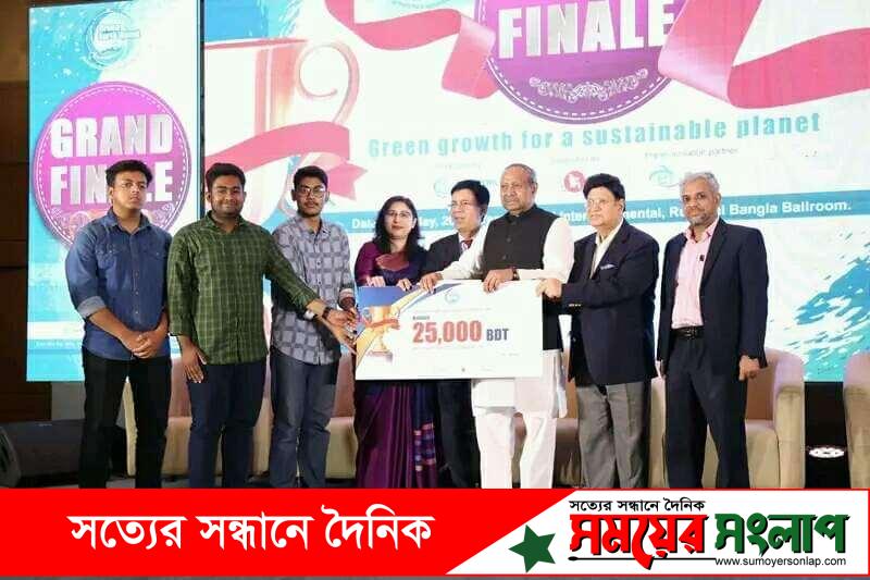 পুরষ্কার তুলে দেন,গনপ্রজাতন্ত্রী বাংলাদেশ সরকারের বিজ্ঞান ও প্রযুক্তি মন্ত্রণালয়ের মাননীয় মন্ত্রী জনাব