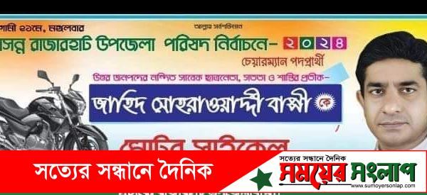 মোঃ শফিকুল ইসলাম, স্টাফ রিপোর্টারঃ (১০ মে) শুক্রবার সন্ধ্যায় রাজারহাট পাইলট উচ্চ বিদ্যালয়ে আব্দুল্লাহ সোহরাওয়ার্দী অডিটোরিয়াম হলরুমে মোটরসাইকেল মার্কার উপজেলা চেয়ারম্যান প্রার্থী জাহিদ ইকবাল সোহরাওয়ার্দী বাপ্পির পক্ষে