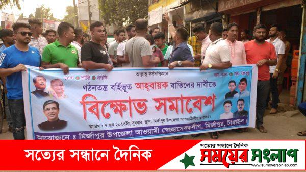 মোঃ সবুজ খান মির্জাপুর টাঙ্গাইলঃ গঠনতন্ত্র বর্হিভূত অপু শেখকে টাঙ্গাইলের মির্জাপুর উপজেলা স্বেচ্ছাসেবকলীগের আহবায়ক অনুমোদন দেয়ার প্রতিবাদে মির্জাপুরে বিক্ষোভ ও মিছিল সমাবেশ হয়েছে। বিকেলে উপজেলা সদরে মির্জাপুর উপজেলা স্বেচ্ছাসেবকলীগ সম্মেলন