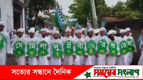 মুন্সীগঞ্জ প্রতিনিধিঃ পবিত্র ঈদে মিলাদুন্নবী (সা:) সাল্লাল্লাহু আলাইহি ওয়াসাল্লাম উপলক্ষে দা’ওয়াতে ইসলামী বাংলাদেশ মুন্সীগঞ্জ জেলার উদ্যোগে বিশাল জশনে জুলুস বের করেছে। সোমবার (১৬ সেপ্টেম্বর) জেলা শহরের পশ্চিম দেওভোগ আলা হযরত