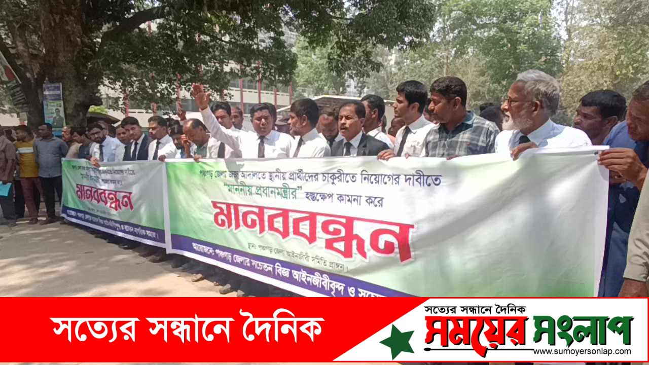 পঞ্চগড় জেলা জজ আদালতে স্থানীয় প্রার্থীদের চাকুরীতে নিয়োগের দাবীতে প্রধানমন্ত্রীর হস্তক্ষেপ কামনা করে মানববন্ধন কর্মসুচী পালন করা হয়েছে।