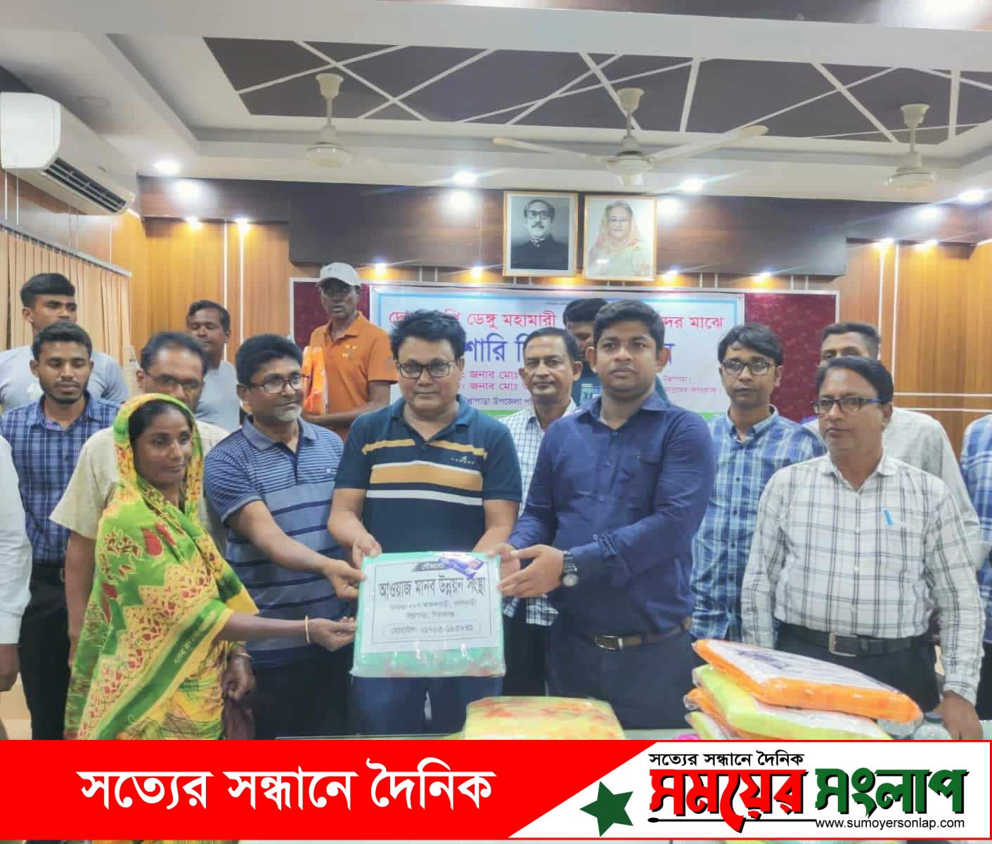 আওয়াজ মানব উন্নয়ন সংস্থার (আমুস) উদ্যোগে শনিবার রাতে সিরাজগঞ্জের উল্লাপাড়ায় ডেঙ্গু মহামারী প্রতিরোধে দুঃস্থ নারী ও পুরুষদের মধ্যে মশারি বিতরণ করা হয়। এ উপলক্ষে উপজেলা পরিষদ মিলনায়তনে আয়োজিত অনুষ্ঠানে প্রধান অতিথি ছিলেন উপজেলা নির্বাহী কর্মকর্তা মোঃ উজ্জল হোসেন। আমুসের প্রতিষ্ঠাতা মোঃ আইনুল হকের সভাপতিত্বে মশারি বিতরণ অনুষ্ঠানে ডেঙ্গু প্রতিরোধে করণীয় ও মানুষকে সচেতন হবার পরামর্শ দিয়ে অন্যান্যের মধ্যে বক্তব্য রাখেন অবসরপ্রাপ্ত সহকারী আনসার অ্যাডজুটেন্ট মোঃ সেলিম রেজা, সংস্থার পরিচালক রাকিবুল ইসলাম সুমন, যুব উন্নয়ন কর্মকর্তা সাইদুল ইসলাম ও একাত্তর টিভির প্রতিনিধি রায়হান আলী। অনুষ্ঠানে এই সংস্থার অপর কর্মকর্তারা উপস্থিত ছিলেন। এলাকার ২ শতাধিক মানুষের মধ্যে মশারি বিতরণ করা হয়।