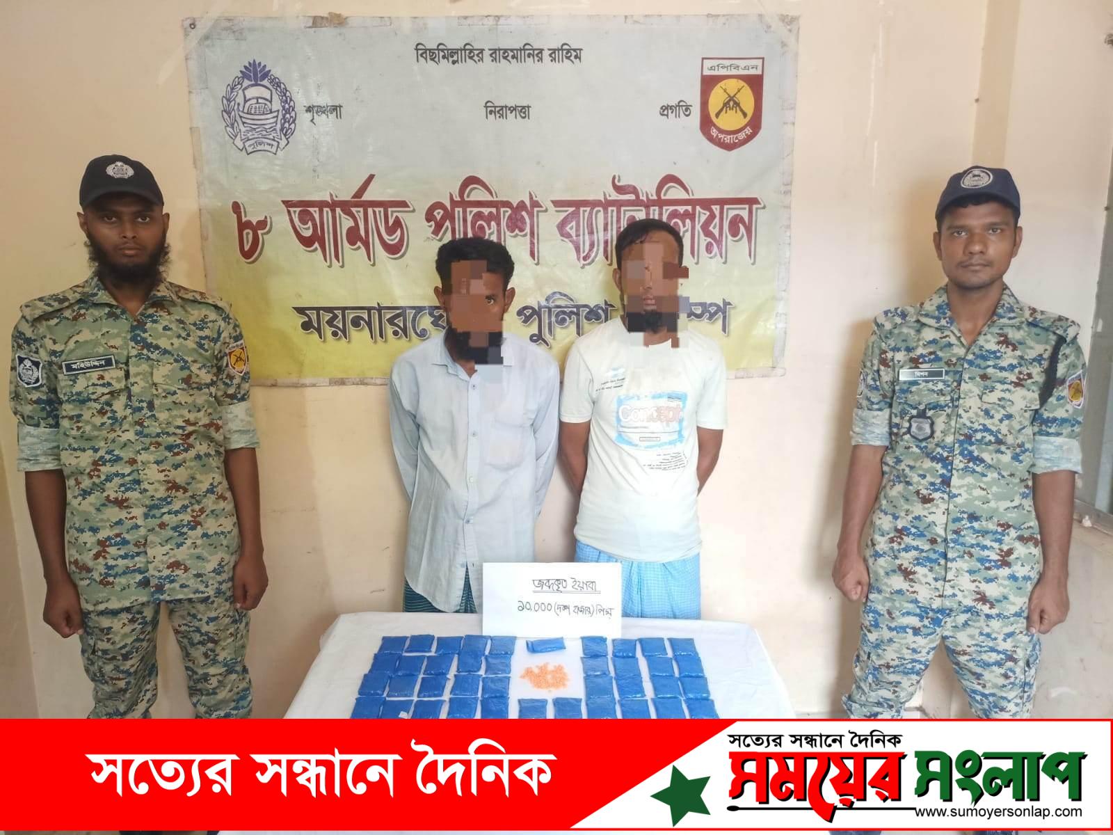 পিতা-মৃত বাচা মিয়া, মাতা-মৃত জোহরা বেগম, এফসিএন নং-২৩১১৭০, ব্লক-ডি/৩, ক্যাম্প-১৪ (হাকিম পাড়া) বর্তমান সাং-ব্লক-বি/১০, ক্যাম্প-১১, ২। জাহিদ আলম(৩৫), পিতা-রশিদ আহম্মেদ, মাতা-খোরশিদা, এফসিএন নং-১৭৭৪২৪, ব্লক-বি/১০, ক্যাম্প-১১, উভয় সাং-বালুখালী-২, থানা-উখিয়া, জেলা-কক্সবাজারদের দখল হতে ১০,০০০(দশ হাজার) পিস এ্যামফিটামিন জাতীয় ইয়াবা সদৃশ ট্যাবলেট সহ গ্রেফতার করে।