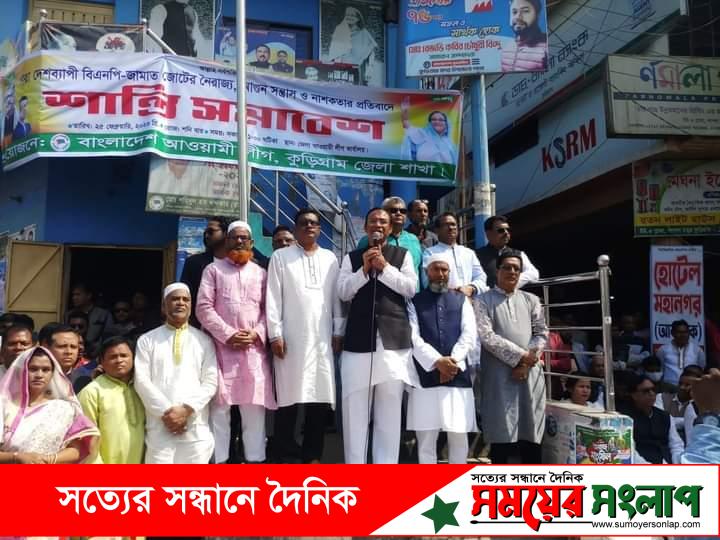 কুড়িগ্রাম জেলা আওয়ামীলীগের আয়োজনে বিএনপি জামায়াতের ষড়যন্ত্র মূলক অপরাজনীতির বিরুদ্ধে কুড়িগ্রাম জেলা আওয়ামীলীগের আয়োজনে শান্তি সমাবেশে অনুষ্ঠিত হয় উক্ত সমাবেশে প্রধান অতিথি হিসেবে বক্তব্য রাখেন জেলা আওয়ামী লীগের সভাপতি আলহাজ্ব জাফর আলী, বিশেষ অতিথি হিসেবে বক্তব্য রাখেন, জেলা আওয়ামী লীগের সাধারণ সম্পাদক আমান উদ্দিন আহমেদ মঞ্জু, জেলা যুবলীগের আহবায়ক এডভোকেট আলহাজ্ব রুহুল আমিন দুলাল, জেলা আওয়ামী লীগের সাংগঠনিক সম্পাদক আবুল কালাম আজাদ,আরও উপস্থিত ছিলেন রাজারহাট উপজেলা আওয়ামী লীগের সাধারণ সম্পাদক অধ্যক্ষ আবুল কালাম আজাদ, উমরমজিদ ইউনিয়ন আওয়ামী লীগের সাধারণ সম্পাদক জহুরুল ইসলাম, ঘড়িয়ালডাঙ্গা ইউনিয়ন যুবলীগের সভাপতি রুকুনুজ্জামান রোকন ও সাধারণ সম্পাদক আমিনুল ইসলাম আমিন, ঘড়িয়ালডাঙ্গা ইউনিয়ন পরিষদের চেয়ারম্যান আব্দুল কুদ্দুস প্রামাণিক , শাহাজাহান খন্দকার সহ উপস্থিত ছিলেন জেলা ও বিভিন্ন উপজেলা থেকে আগত আওয়ামীলীগের সহযোগী সংগঠনের অসংখ্য নেতৃবৃন্দ।
