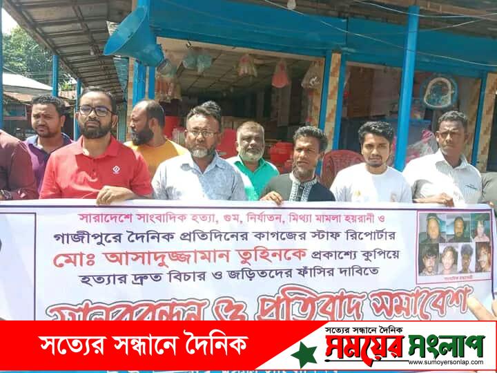 সারাদেশে সাংবাদিক হত্যা,গুম,নির্যাতন মিথ্যা মামলায় হয়রানি ও গাজীপুরে দৈনিক প্রতিদিনের কাগজের স্টাফ রিপোর্টার আসাদুজ্জামান তুহিন’কে প্রকাশ্যে কুপিয়ে হত্যার দ্রুত বিচার ও জড়িতদের ফাঁসির দাবিতে রাজারহাট উপজেলায় মানববন্ধন ও প্রতিবাদ সমাবেশ অনুষ্ঠিত হয়েছে। বৃহস্পতিবার (১৪-আগস্ট) দুপুরে রাজারহাট উপজেলার সকল সাংবাদিক আয়োজিত মানববন্ধন