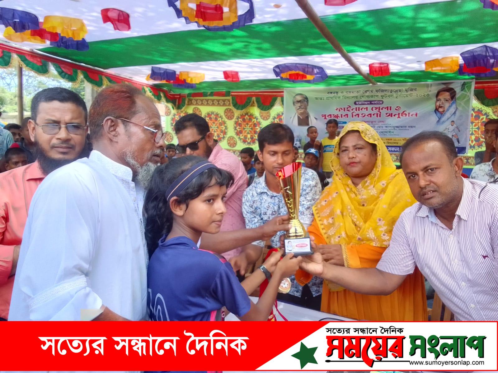 ময়মনসিংহের নান্দাইল উপজেলায় বঙ্গবন্ধু ও বঙ্গমাতা আন্ত: প্রাথমিক বিদ্যালয় জাতীয় গোল্ডকাপ ফুটবল টুর্নামেন্ট ২০২৩ এর ইউনিয়ন পর্যায়ের ফাইনাল খেলা ও পুরষ্কার বিতরণ অনুষ্ঠিত হয়েছে। সোমবার ৫নং গাংগাইল ইউনিয়নের ৪৩নং নান্দাইল রোড সরকারি প্রাথমিক বিদ্যালয় মাঠে দুটি সরকারি প্রাথমিক বিদ্যালয়ের বালক ও বালিকা দলের মধ্যে বঙ্গবন্ধু ও বঙ্গমাতা জাতীয় গোল্ডকাপ ফাইনাল খেলা অনুষ্ঠিত হয়। শিক্ষক শামছুল ইসলামের ক্রীড়া পরিচালনায় নান্দাইল রোড সরকারি প্রাথমিক বিদ্যালয়ের বালক দল ইউনিয়ন পর্যায়ে বঙ্গবন্ধু জাতীয় গোল্ডকাপ চ্যাম্পিয়নশীপ ট্রফি অর্জন করে, পাশাপাশি বালিকা দল রানার্সআপ ট্রফি অর্জন করেছে। অপরদিকে গোপীনাথপুর সরকারি প্রাথমিক বিদ্যালয়ের বালিকা দল বঙ্গমাতা জাতীয় গোল্ডকাপ চ্যাম্পির্য়নশীপ ট্রফি অর্জন করে এবং বালক দল রানার্সআপ ট্রফি অর্জন করে। বর্তমানে দুটি বিজয়ী দল উপজেলা পর্যায়ে খেলার যোগ্যতা অর্জন করেছে। উক্ত ফাইনাল খেলা ও পুরষ্কার বিতরণ অনুষ্ঠানে উপস্থিত ছিলেন গাংগাইল ইউনিয়নের সংরক্ষিত আসনের মহিলা ইউপি সদস্য বিউটি আক্তার, নান্দাইল উপজেলা সরকারি প্রাথমিক শিক্ষক সমিতির সভাপতি প্রধান শিক্ষক আমিনুল ইসলাম, সাংবাদিক মো. শফিকুল ইসলাম রিপন, প্রধান শিক্ষক আনোয়ারুল হক, তোফাজ্জল হোসেন, ভারপ্রাপ্ত প্রধান শিক্ষক শামছুল ইসলাম মানিক, আব্দুর রাজ্জাক রাজীব, সহকারী শিক্ষক তৌফিকুল ইসলাম রতন, শফিকুল ইসলাম কিরন,পারভীন আক্তার প্রমুখ। খেলা শেষে চ্যাম্পিয়নশীপ ও রানার্সআপ অর্জনকারী দলের হাতে পুরষ্কার তুলে দেওয়া হয়।