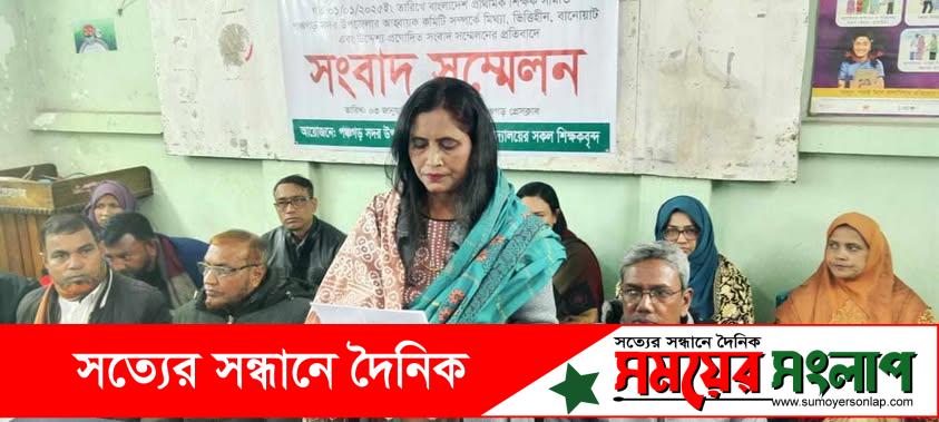 বাংলাদেশ প্রাথমিক শিক্ষক সমিতি পঞ্চগড় সদর উপজেলার আহবায়ক কমিটি সম্পর্কে মিথ্যা, ভিত্তিহীন, বানোয়াট এবং উদ্দেশ্য প্রনোদিত সংবাদ সম্মেলনের প্রতিবাদে সংবাদ সম্মেলন হয়েছে। ৩ জানুয়ারী শুক্রবার সকালে পঞ্চগড় প্রেসক্লাবে এ সংবাদ সম্মেলন অনুষ্ঠিত হয়। পঞ্চগড় সদর উপজেলার সরকারী প্রাথমিক বিদ্যালয়ের সকল শিক্ষকবৃন্দ এ সংবাদ সম্মেলনের আয়োজন করে। সংবাদ সম্মেলনে পঞ্চগড় সদর উপজেলা শাখার প্রাথমিক বিদ্যালয়ের আহবায়ক আফরোজা প্রধান, যুগ্ম আহবায়ক মনসুর আলম বক্তব্য দেন। সংবাদ সম্মেলন উপস্থিত বক্তারা বলেন, গত ৯ ডিসেম্বর পঞ্চগড় সদর উপজেলার শিক্ষকদের মতামতের ভিত্তিতে আমরা একটি আহবায়ক কমিটি গঠন করি। সে আহবায়ক কমিটি কেন্দ্রীয় নির্বাহী অনুমোদন দেন। এ কমিটি গঠনের প্রতিবাদে ১লা জানুয়ারী বাংলাদেশ প্রাথমিক শিক্ষক সমিতির কমিটিতে জায়গা পাওয়া সদস্যকে জোর করে পদত্যাগ করিয়ে একাংশ গ্রুপ আহবায়ক কমিটির বিপক্ষে সংবাদ সম্মেলন করে। তারা আরও বলেন, তাদের মধ্যে কিছু কিছু শিক্ষক বিভ্রান্তমূলক তথ্য ছড়াচ্ছেন। আমরা সকল শিক্ষকরা এর তীব্র নিন্দা ও প্রতিবাদ জানাচ্ছি। তারা শিক্ষকদের জোর করে পদত্যাগ দেখিয়ে সংবাদ সম্মেলন করেন। তারা যে সংবাদ সম্মেলনটি করেছিল তা ছিল সম্পন্ন ভিত্তিহীন বানোয়াট এবং উদ্দেশ্যেপ্রনীত। তাদের এ সংবাদ সম্মেলনে সাধারন শিক্ষকগনের কোন সংশ্লিষ্টতা নেই। সংবাদ সম্মেলনে আহবায়ক কমিটির যুগ্ন আহবায়ক আছিম উদ্দীন, সদস্য রুবাইয়া সুলতানা, রেজাউল করিম, কেরামত আলী, বিউটি আক্তার, আলী মোর্তজা, আন্জুমান প্রধান, প্রধান শিক্ষক আব্দুস সোবাহান, সহকারী শিক্ষক ছত্রসেন রায়, ফাতেমা আক্তার, সাইফুল ইসলাম, খাদেমুল ইসলামসহ পঞ্চগড় সদর উপজেলার বিভিন্ন সরকারি প্রাথমিক বিদ্যালয়ের সহকারি শিক্ষক ও প্রধান শিক্ষকরা উপস্থিত ছিলেন।