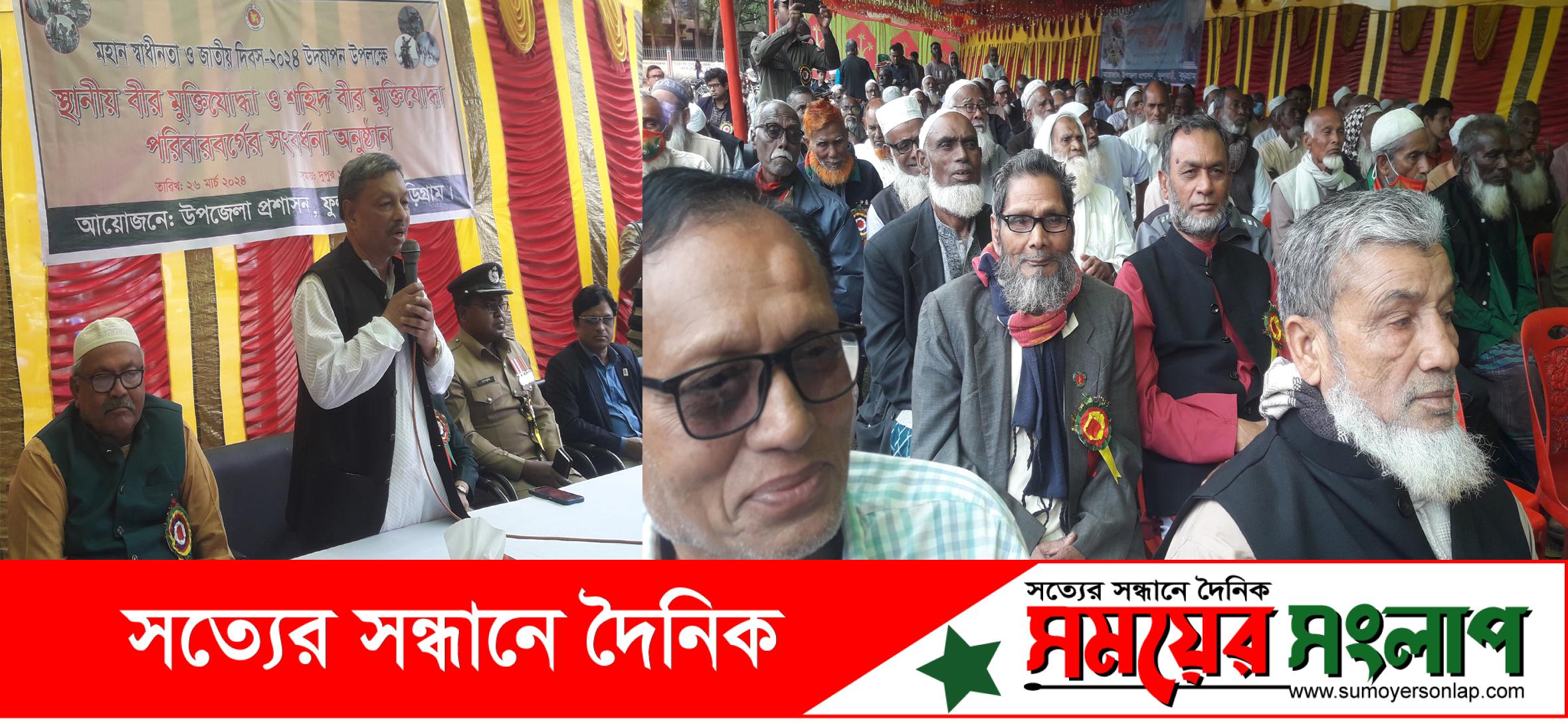 মহান স্বাধীনতা ও জাতীয় দিবস ২৬ মার্চ/২৪উপলক্ষে রাজাকার মুক্ত বাংলাদেশ গড়ার অঙ্গিকার নিয়ে কুড়িগ্রামের ফুলবাড়ী উপজেলা প্রশাসনের আয়োজনে ফুলবাড়ী জছিমিঞা সরকারী মডেল উচ্চ বিদ্যালয় মাঠে ৩ শতাধিক বীর মুক্তিযোদ্ধা ও শহীদ মুক্তিযোদ্ধা পরিবারবর্গের সংবর্ধনা দেওয়া হয়েছে। প্রধান অতিথি হিসেবে উপস্থিত ছিলেন কুড়িগ্রাম ২- আসনের জাতীয় সংসদ সদস্য বীর মুক্তিযোদ্ধা প্রফেসর ডাঃ মোঃ হামিদুল হক খন্দকার।