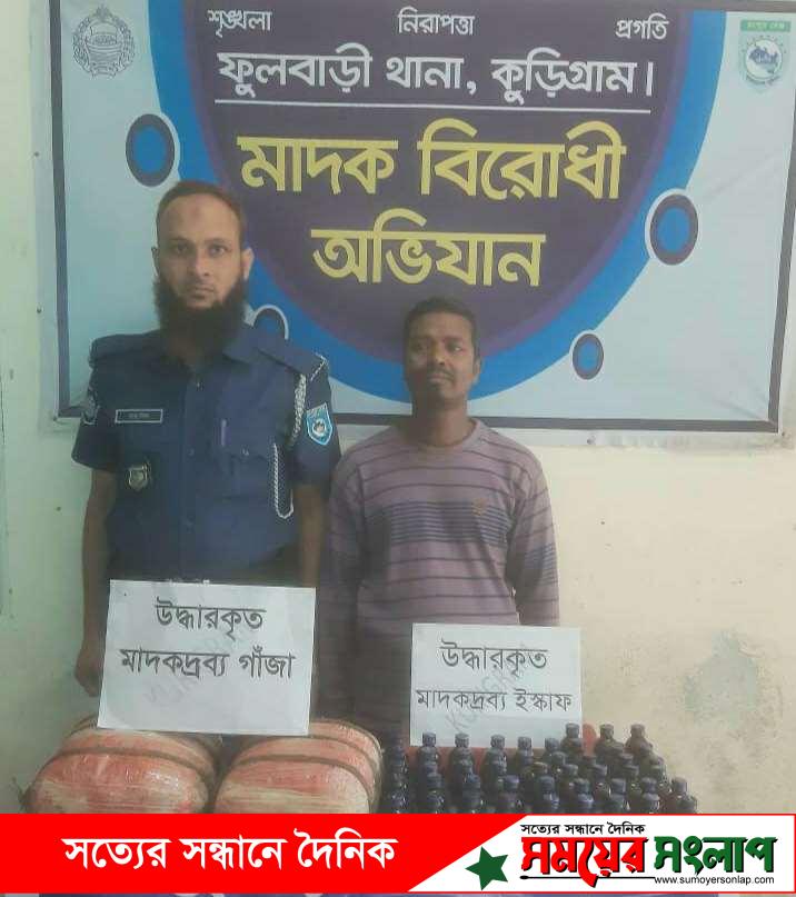 কুড়িগ্রামের ফুলবাড়ীতে থানা পুলিশ পৃথক মাদক বিরোধী অভিযান চালিয়ে ১১ কেজি ১০০ গ্রাম গাঁজা ও ৪৮ বোতল অ্যাসকাপ সিরাপসহ দুই মাদক ব্যবসায়ীকে হাতেনাতে গ্রেপ্তার করা হয়েছে।