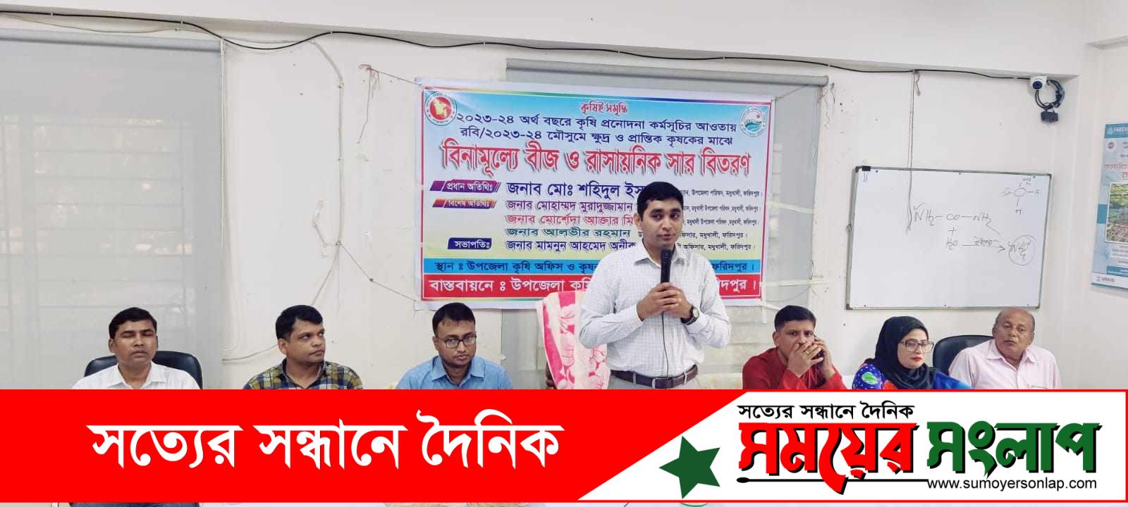 মধুখালীতে প্রান্তিক চাষীকে বিনামূল্যে সার ও বীজ প্রদান করা হয়েছে।