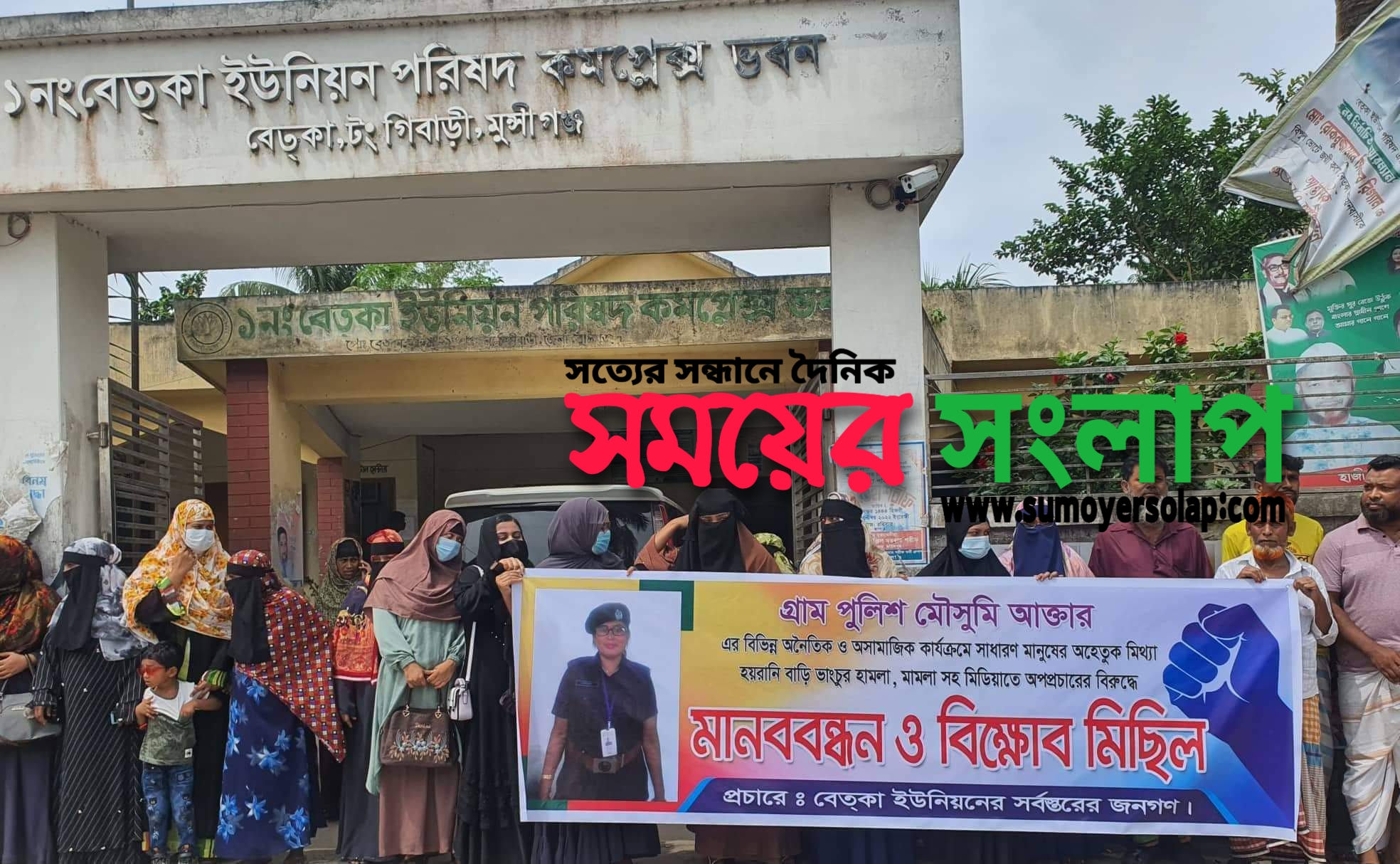 মুন্সিগঞ্জে গ্ৰাম পুলিশের বিরুদ্ধে মানববন্ধন ও বিক্ষোভ মিছিল।