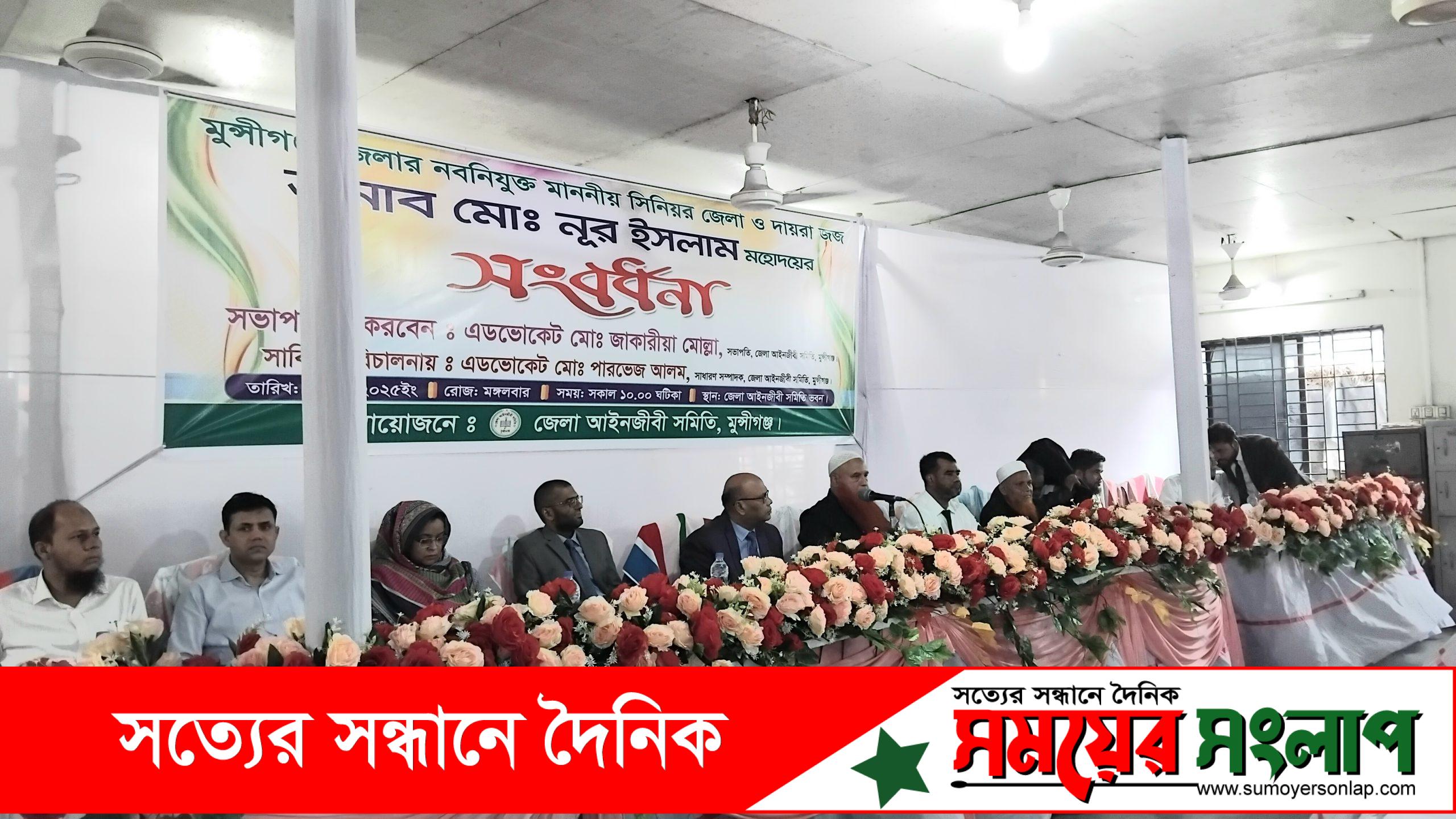 মুন্সীগঞ্জে নবনিযুক্ত সিনিয়র জেলা ও দায়রা জজ মোঃ নূর ইসলামকে সংবর্ধনা দিয়েছেন আইনজীবীরা।