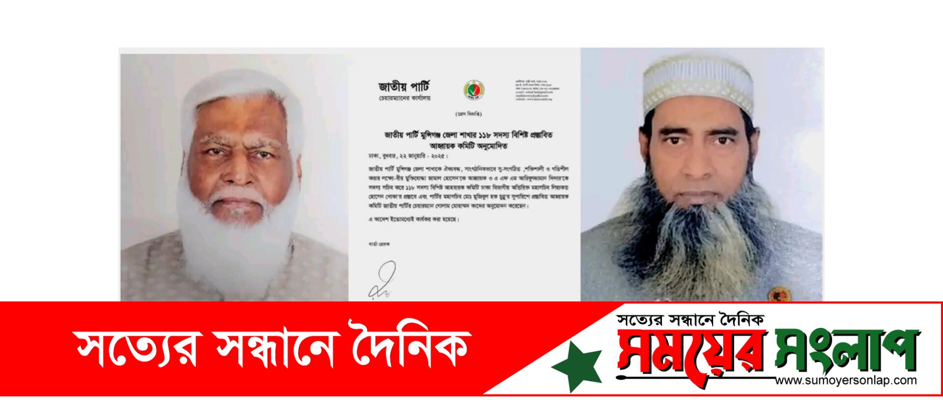 মুন্সীগঞ্জ জাপার আহ্বায়ক কমিটির অনুমোদন । বীর মুক্তিযোদ্ধা জামাল হোসেনকে আহ্বায়ক ও এএফএম আরিফুজ্জামান দিদারকে সদস্য সচিব ।