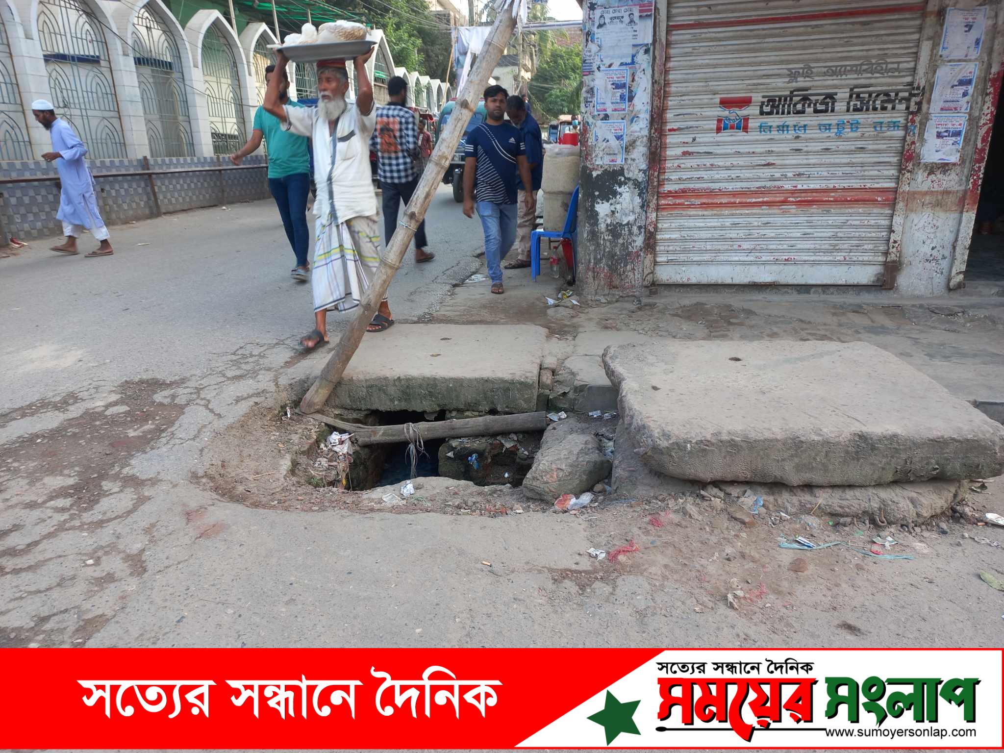 স্লাব বিহীন চৌ-রাস্তা যানবাহন চলাচল ও পায়ে হাটা মানুষের জন্য বিপদজনক।
