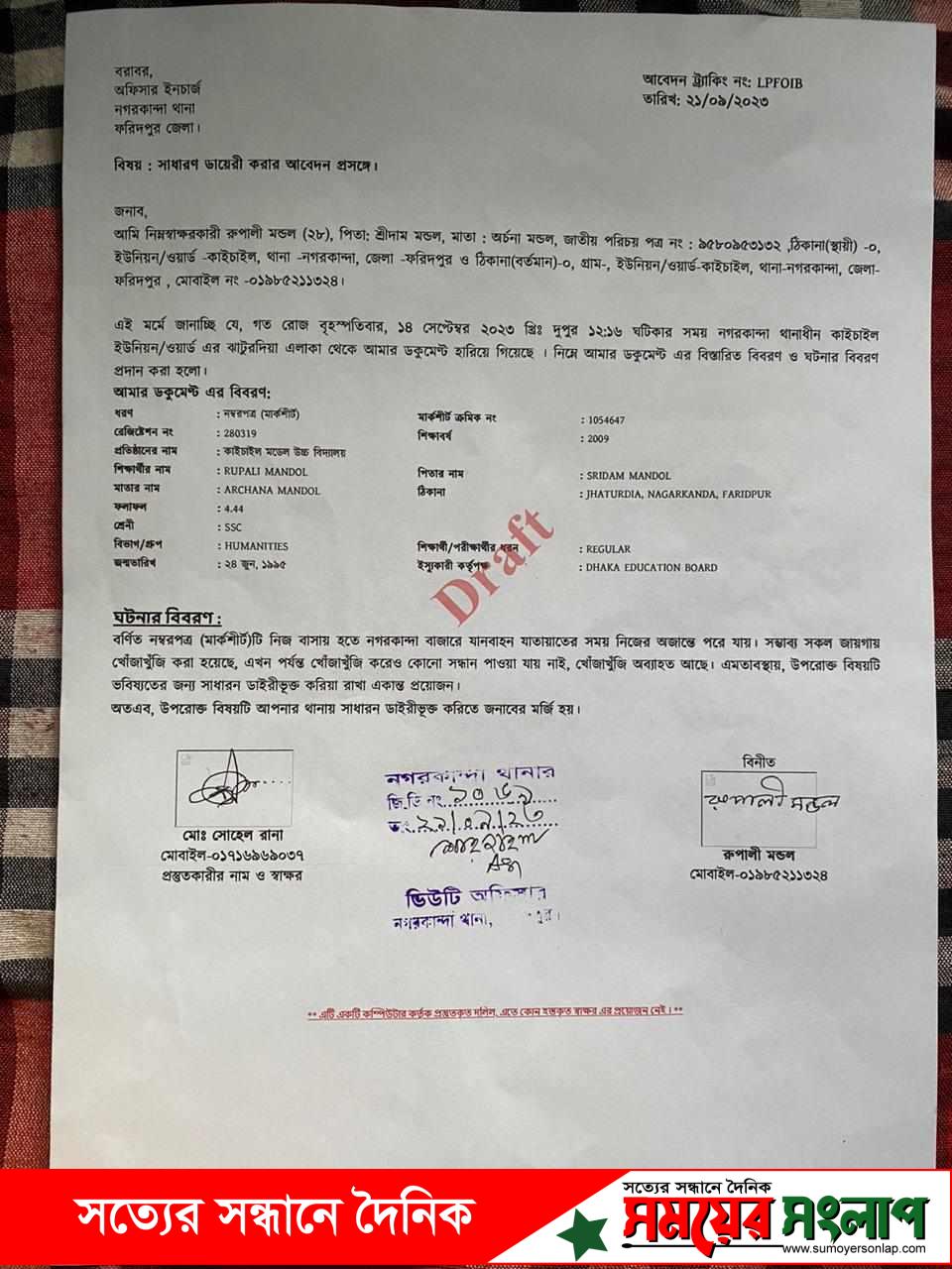 নগরকান্দা থানার জিডি নং ১০৬৯/২৩