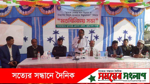 ফুলবাড়ী ( কুড়িগ্রাম) প্রতিনিধিঃ কুড়িগ্রামের ফুলবাড়ীতে গ্রাহক সেবার মান উন্নয়ন ও নিরাপদ বিদ্যুৎ ব্যবহারে উদ্বুদ্ধকরণ বিষয়ে মতবিনিময় সভা অনুষ্ঠিত হয়েছে। সোমবার সকাল ১১ টায় পল্লীবিদ্যুৎ ফুলবাড়ী জোনাল অফিসের আয়োজনে