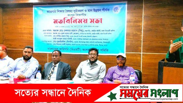 বদরুদ্দোজা প্রধান, পঞ্চগড় প্রতিনিধিঃ  করিগরি শিক্ষার বৈষম্য দূরীকরন এবং শিক্ষার মান উন্নয়ন শীর্ষক বিভাগীয় মতবিনিময় সভা অনুষ্ঠিত হয়েছে। গতকাল শুক্রবার (০৮ নভেম্বর) দুপুরে বাংলাদেশ বিএমটি কারিগরি কলেজ শিক্ষক সমিতির আয়োজনে