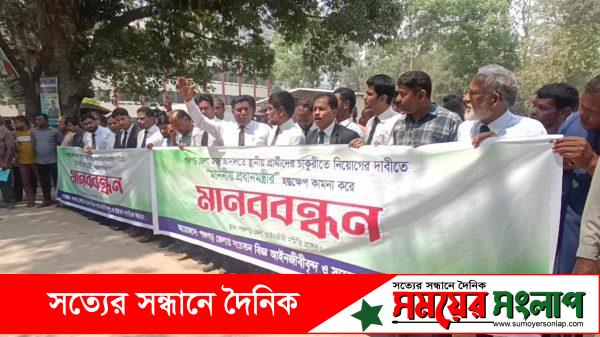 আদালতে স্থানীয়দের চাকুরী দেয়ার দাবীতে মানববন্ধন