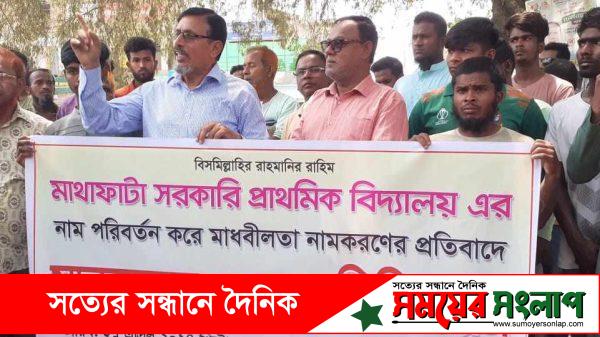 সরকারি প্রাথমিক বিদ্যালয়ের নাম পরির্বতনের প্রতিবাদে মানববন্ধন