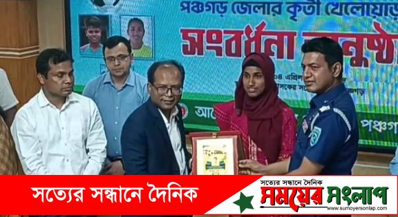 বদরুদ্দোজা প্রধান, পঞ্চগড় প্রতিনিধিঃ পঞ্চগড়ে সাফ নারী ফুটবল চ্যাম্পিয়নশীপ (অনুর্ধ্ব-১৬ ও অনুর্ধ্ব-১৯)’র ৬ কৃতি ফুটবল খেলোয়ারকে সংবর্ধনা দিয়েছে জেলা প্রশাসন। বৃহস্পতিবার দুপুরে জেলা প্রশাসনের আয়োজনে জেলা প্রশাসকের সম্মেলন