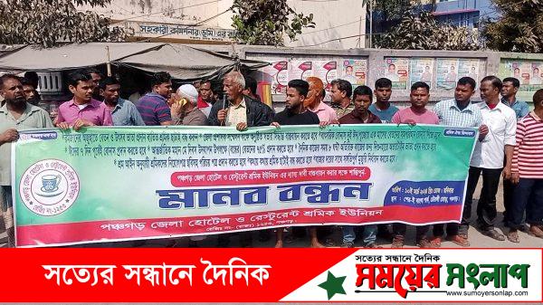 বদরুদ্দোজা প্রধান, পঞ্চগড় প্রতিনিধিঃ রমজানের ১ মাসের বেতনের সম-পরিমাণ ঈদ বোনাস প্রদান , ঈদের ৭ দিন পূর্বেই বোনাস প্রদান ও শ্রম আইন বাস্তবায়ন করার দাবীতে মানববন্ধন কর্মসুচী পালন করেছে