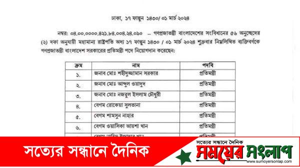 প্রতিমন্ত্রী হিসেবে সন্ধ্যায় শপথ নিচ্ছেন যে ৭ এমপি