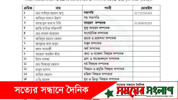 আজহারুল ইসলাম সাদী, স্টাফ রিপোর্টারঃ গঠনতন্ত্রের ৭.১.৫.২ ধারা মোতাবেক বঙ্গমাতা সাংস্কৃতিক জোট সাতক্ষীরা সদর থানা কমিটি গঠন করা হয়েছে। পহেলা মে বঙ্গমাতা সাংস্কৃতিক জোটের সভাপতি ও সাধারণ সম্পাদক এর