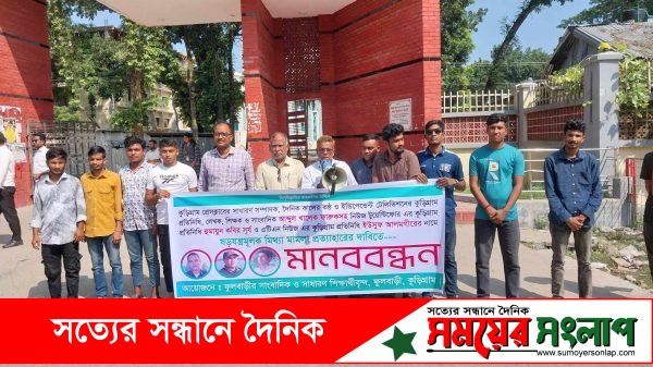 কুড়িগ্রামে সাংবাদিকদের নামে মিথ্যা মামলা প্রত্যাহারের দাবিতে ফুলবাড়ীতে মানববন্ধন ও সমাবেশ