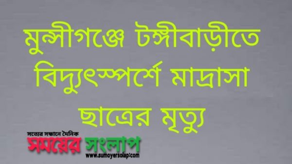 মোঃ লিটন মাহমুদ,মুন্সীগঞ্জ প্রতিনিধি: মুন্সীগঞ্জের টঙ্গীবাড়ীতে বসত ঘরের উপরে গাছের ডাল কাটতে গিয়ে বিদ্যুৎস্পর্শে সৌরভ সরদার (১৬) নামে এক কিশোরের মৃত্যু হয়েছে। সে স্থানীয় চান্দেরবাজার মাদ্রাসার নবম শ্রেণির ছাত্র।