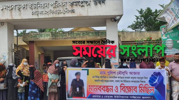 মুন্সিগঞ্জে গ্ৰাম পুলিশের বিরুদ্ধে মানববন্ধন ও বিক্ষোভ মিছিল।