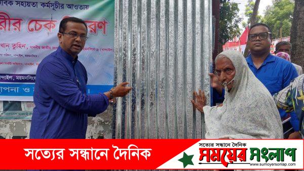 স্টাফ রিপোর্টার ঃ ময়মনসিংহের নান্দাইলে দূর্যোগ ব্যবস্থাপনা ও ত্রাণ মন্ত্রণালয়ের ‘মানবিক সহায়তা ও নগদ অর্থ বিতরণ’ কর্মসূচীর আওতায় ১১২ জন অসহায় হতদরিদ্র পরিবারের মাঝে ঢেউটিন/গৃহমঞ্জুরীর চেক বিতরণ করা হয়েছে। রোববার