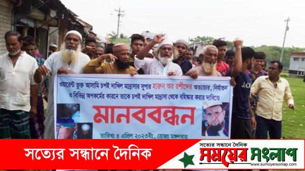 মোঃ শহিদুল ইসলাম পিয়ারু,নান্দাইল প্রতিনিধিঃ ময়মনসিংহের নান্দাইলে চপই দাখিল মাদ্রাসার সুপার হারুন অর রশীদকে বহিষ্কারের দাবীতে মাদ্রাসার অভিভাবক ও এলাকাবাসীরা মানববন্ধন ও বিক্ষোভ মিছিল করে। মঙ্গলবার (৪ঠা এপ্রিল) দুপুর ১১টার